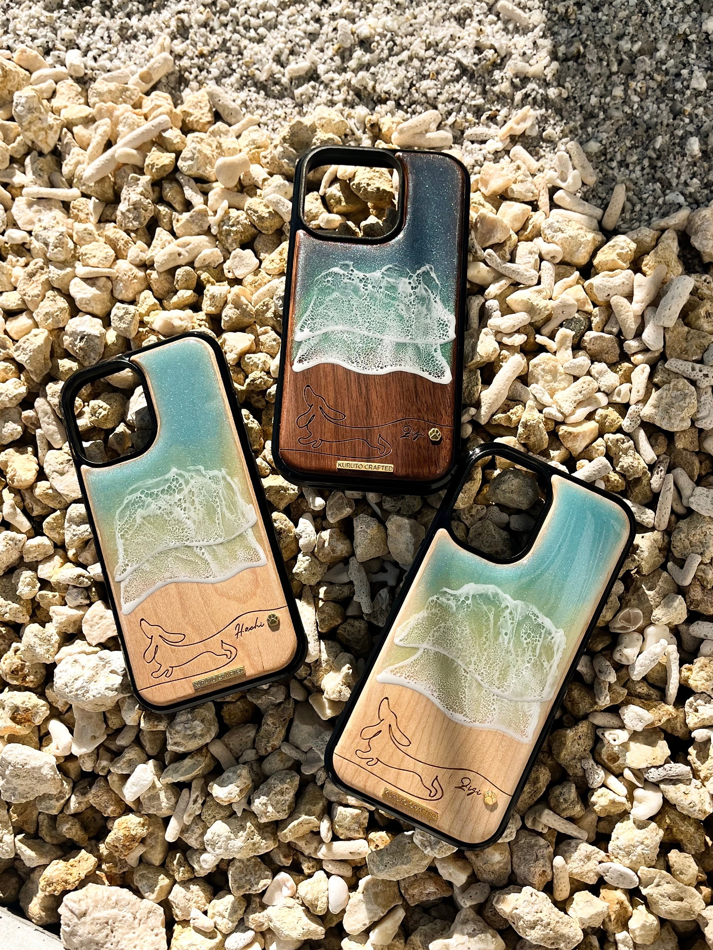 •1つ1つ手作業にて制作している為、全く同じ波の形状、色合いにはならない事、レジン部分に気泡や埃、多少の傷や凹み等が出来てしまう場合がございます。予めご了承下さい。